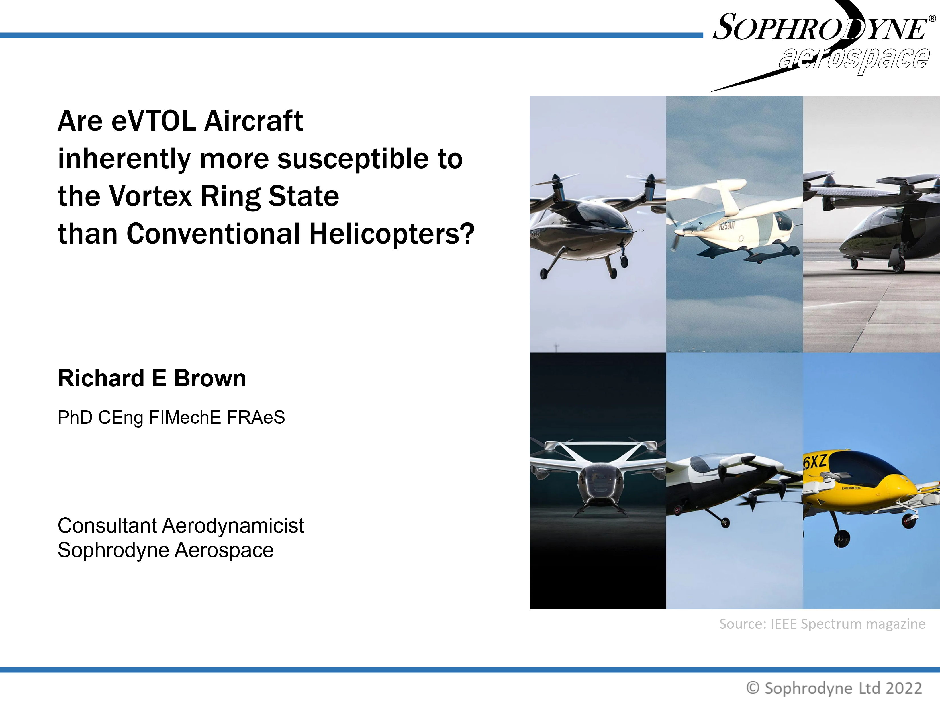 "Sophrodyne's Richard Brown on the Susceptibility of eVTOL Aircraft to Vortex Ring State", Vertical Magazine, online, January 2023.